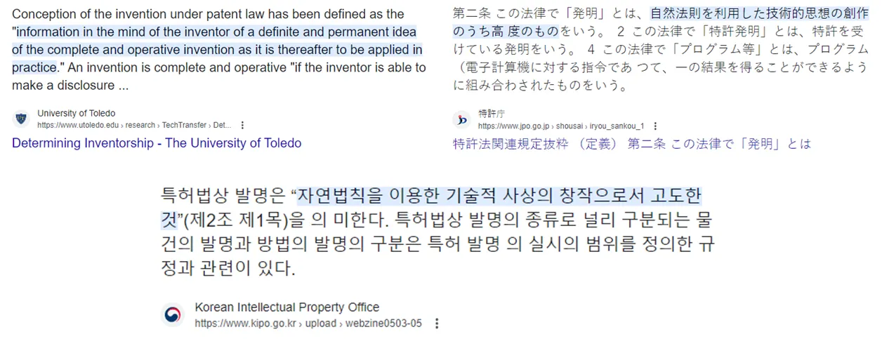 한국, 일본, 톨레도 대학교의 특허법 상 “발명의 정의”