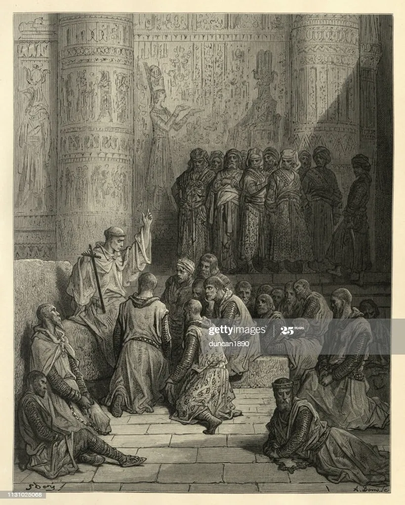 19세기 프랑스의 삽화가 구스타프 도레는 18세기에 출간된 조셉 미샤의 <십자군 이야기>에 수십장의 화려한 삽화를 그리는데, 첨부한 사진은 그 그림들이 가운데 하나입니다. 애석하게도 게티 이미지의 워터마크가 들어간 사진 밖에 찾지 못했지만.