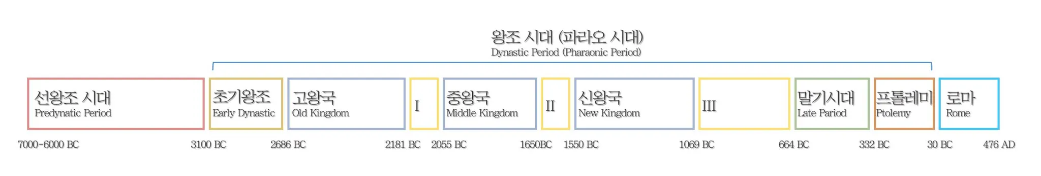고대 이집트의 역사는 무척 깁니다. 짧게 잡으면 기원전 3100년 정도부터 클레오파트라가 로마에 패배하는 기원전 30년 경까지 약 3000년, 조금 더 길게 잡으면 선왕조 시대인 기원전 4000년 경부터 로마 황제 테오도시우스가 기독교를 국교화해서 이집트의 신전들이 폐쇄되기 시작하는 서기 4세기 말까지니깐, 4400년 정도 됩니다.