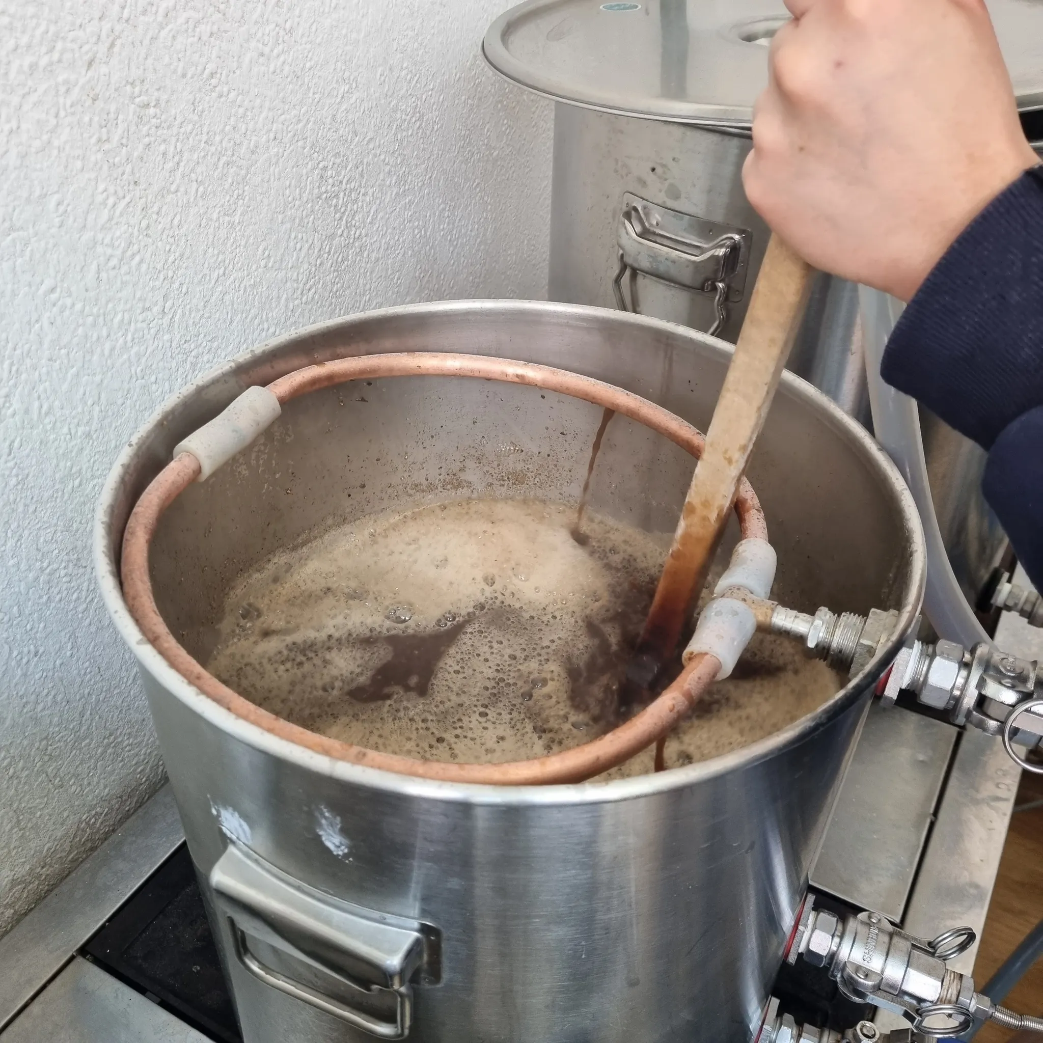 필요한 만큼 당분을 뽑아냈다면 이제 끓일 차례다. 위의 당화 과정을 통해 맥아에서 얻은 당분과 물이 섞인 것을 맥즙이라고 한다. 맥즙을 끓이는 이유는 이후 효모의 활동을 방해할 균을 없애고, 홉의 쓴맛과 향을 뽑아내기 위해서다. 레시피에 따라서 끓이는 중간 홉이나 효모를 위한 영양제, 맥주를 깨끗하기 위한 청징제를 넣게 된다. 맥즙은 보통 60분이나 그 이상 끓이는데, 고된 맥주 양조 중 맥주 한 캔을 들이키며 목을 축이며 수다를 떨기 딱 좋은 시간이다.