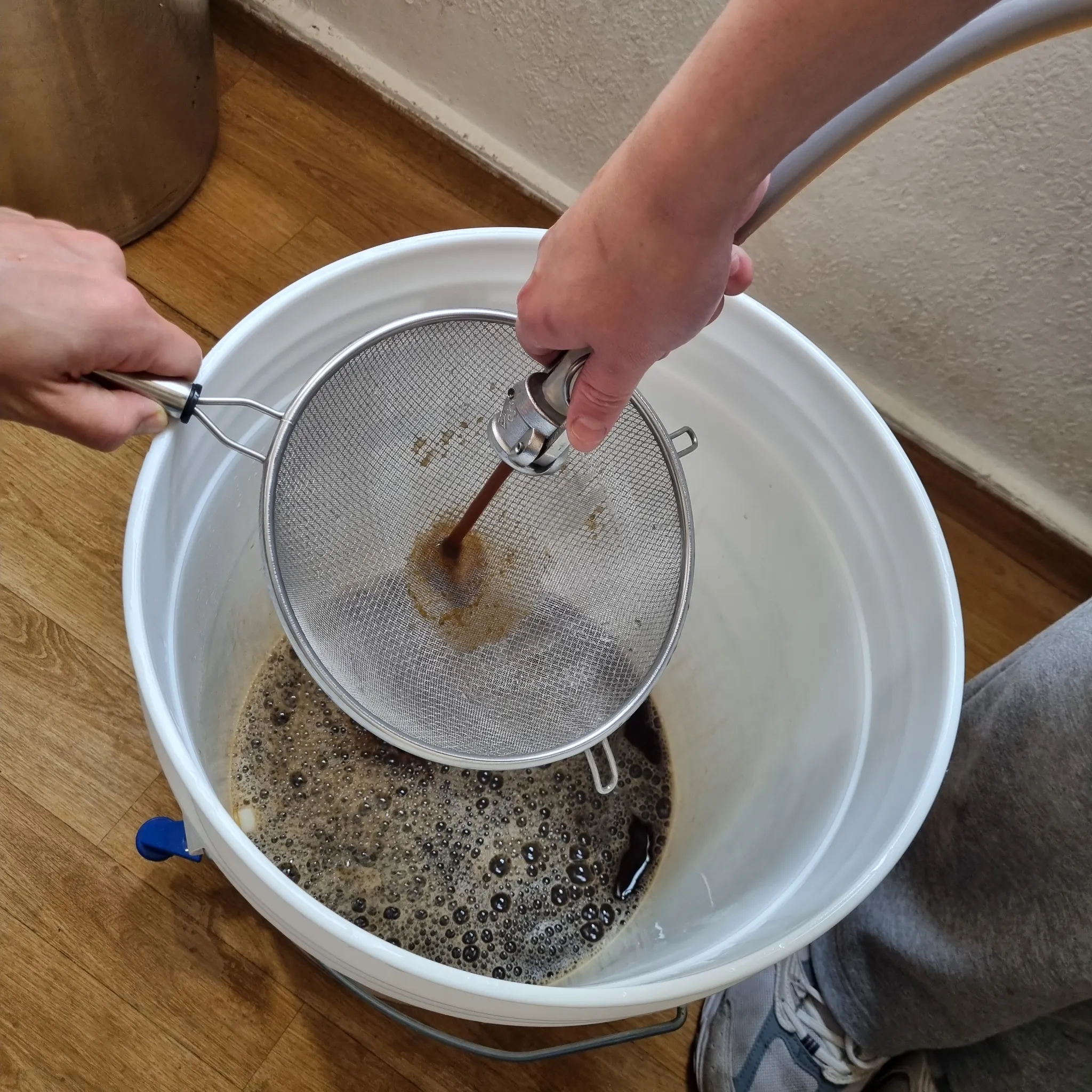 식은 맥즙을 철저히 소독한 발효통으로 옮기는 중