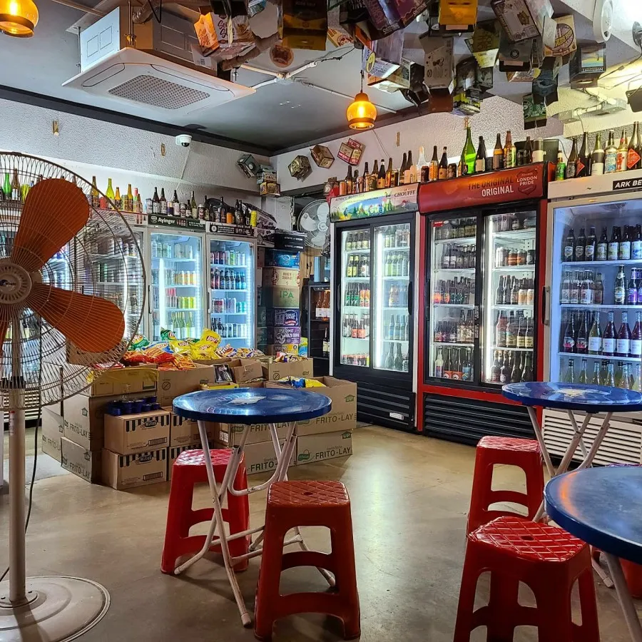 주택가에 있어서인지 길맥은 안되지만, 가게 내에 간단하게 마실수 있는 테이블은 구비되어 있다. 맥주는 다양하게, 든든하게 준비되어 있다. 대부분의 맥주가 냉장 보관되어 있는 것이 장점이지만, 워낙 맥주 종류가 많다보니 온도에 민감하지 않은 종류의 맥주는 외부에 진열되어 있다. 통일된 느낌은 아니지만 직접 쓴 맥주소개글, 레이블에서ㅕ 사장님의 맥주사랑을 느낄 수 있다.