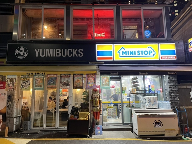 수제맥주가 유행하고 맥주 매니아들이 늘어나며 수많은 보틀샵이 생겼다. 보틀샵 하나 하나마다 개성이 넘치는 곳들이지만 맥덕을 모아두고 가장 유니크한 보틀샵 단 한곳을 고르라고 한다면 대부분 망설임 없이 유미마트를 고를 것이다. 동네에서 흔히볼수 있는 조그만 구멍가게 크기의 보틀샵에서 시작한 유미마트는 지금은 2층과 테라스까지 갖추고 있다. 어디서나 볼수있는 미니스톱 편의점과 나란히 있는 까페같은 느낌의 유미벅스, 겉으로는 평범해 보이는 이 곳을 특별한 보틀샵으로 만드는 것은 무엇일까.