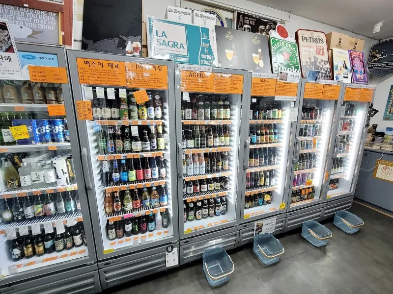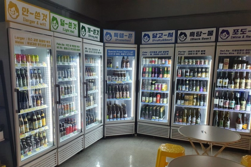 가게 안으로 들어가면 캔맥주와 병맥주로 가득찬 냉장고가 빽빽하게 들어찬 모습을 마주하게 된다. 맥주만 으로는 심심할 입을 위해 계산대 앞에는 과자류가 구비되어 있다. 맥주는 보관 온도가 생명인데, 1세대 보틀샵 답게 모든 맥주를 실온이 아닌 냉장고에서 시원하게 보관해서 파는 점이 장점이다. 새롭게 유행하는 맥주도 들어오지만, 높은 완성도로 꾸준한 사랑을 받아오는 친근한 맥주들(런던 프라이드, KBS, 스톤 IPA, 시메이, 두체스 드 부르고뉴 등등)이 항상 자리를 지키고 있다.