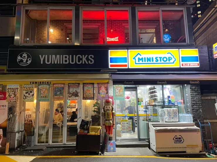 수제맥주가 유행하고 맥주 매니아들이 늘어나며 수많은 보틀샵이 생겼다. 보틀샵 하나 하나마다 개성이 넘치는 곳들이지만 맥덕을 모아두고 가장 유니크한 보틀샵 단 한곳을 고르라고 한다면 대부분 망설임 없이 유미마트를 고를 것이다. 동네에서 흔히볼수 있는 조그만 구멍가게 크기의 보틀샵에서 시작한 유미마트는 지금은 2층과 테라스까지 갖추고 있다. 어디서나 볼수있는 미니스톱 편의점과 나란히 있는 까페같은 느낌의 유미벅스, 겉으로는 평범해 보이는 이 곳을 특별한 보틀샵으로 만드는 것은 무엇일까.